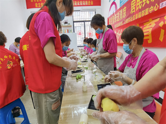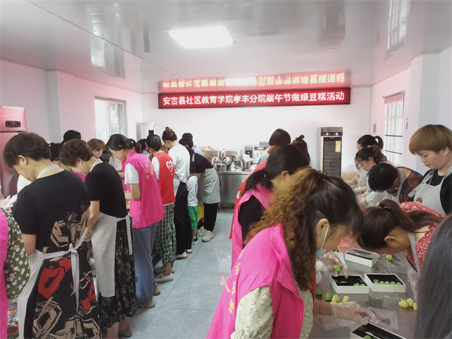 为迎接传统节日端午节的到来,6月20日,安吉县社区教育学院孝丰分院组织辖区内三眼井社区、城北社区、北街社区的90多位学员体验制作绿豆糕,邀请糕点师杨晹、李灵芝授课。