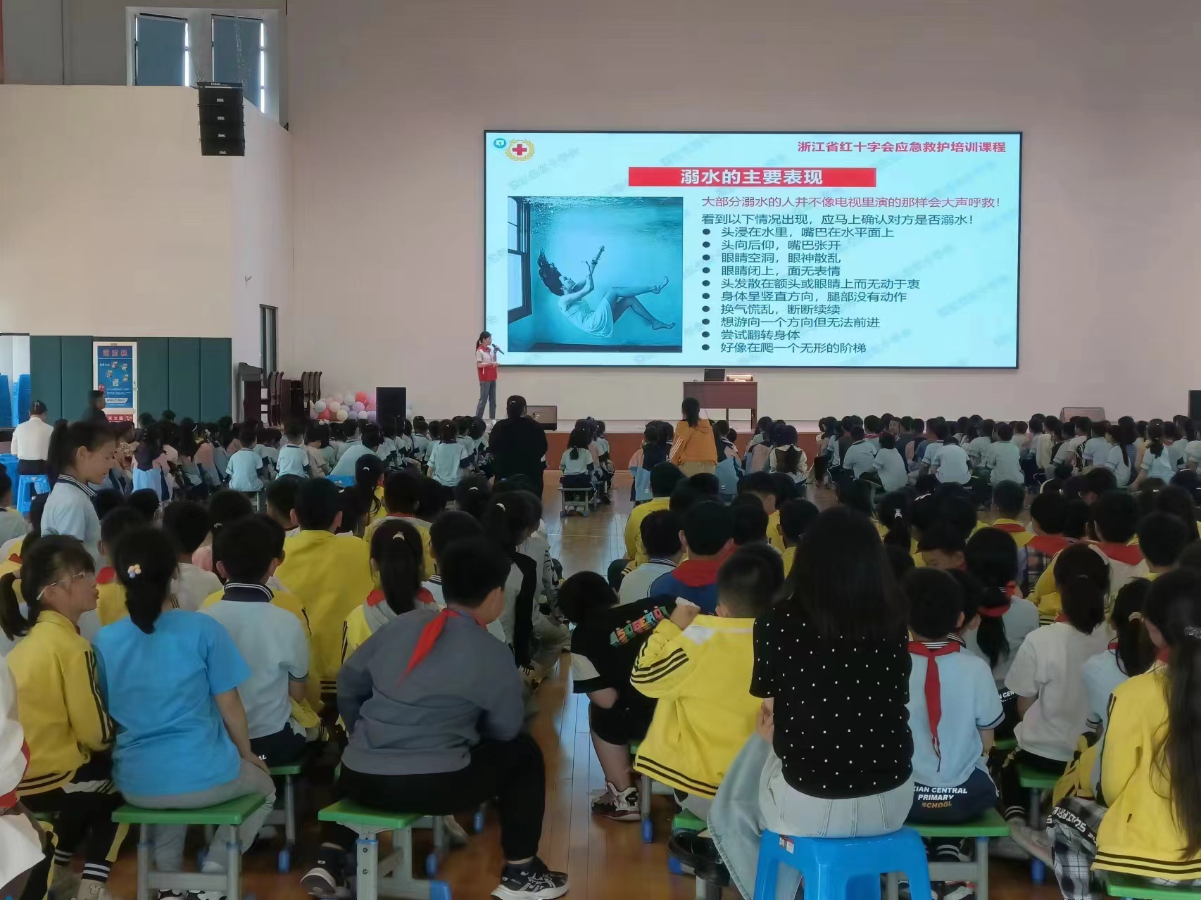 为进一步普及应急救护知识,提高师生自救互救意识与能力,5月8日,齐贤成人文化技术学校组织开展“防溺水培训进校园”活动。齐贤中心小学2018名学生和齐贤中心小学陶里校区810名学生参加活动,现场座无虚席,活动效果明显。