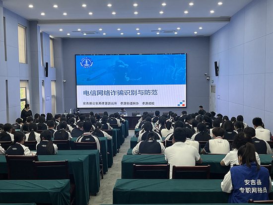 6月6日上午,安吉县社区教育学院孝源学习中心联合安吉县公安局孝源派出所,安吉县孝源街道科协、综治办等部门到安吉技师学院报告厅对高一、高二部分学生开展防诈骗和防溺水教育活动。