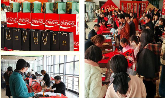 形式多样的新春送福是本次活动的祝福序曲。校领导们向广大教职工送上了最诚挚的新年贺词,祝愿大家在新的一年安康顺遂、心想所成;书法卓越的郭敏、沈春娟、郑超艺、徐婧、沈思齐等五位老师现场为教职工们义写祝福,供不应求,红底黑字的“福”字、“蛇”年好运的纸扇等不仅承载了大家对新年的美好期盼,更传达了艺校大家庭对每位家人的美好祝愿,现场氛围热烈而温馨。