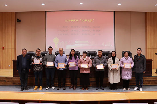 张昌森宣读了2024年度校“优秀党员”、校“党员先锋岗”名单,学校党总支副书记、校长吴德章为获奖人员颁奖。
