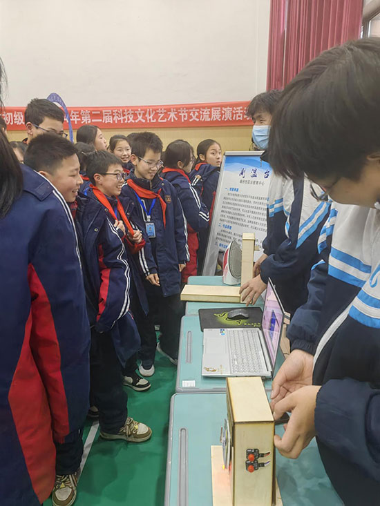 团队成员们为初级中学的学生和老师们展示了自己研发的智能项目,引来了现场的热烈反响和浓厚兴趣。这些项目均融合了人工智能技术,在展示过程中,团队成员详细介绍了智能项目的功能和应用场景。该项目包括智慧农场甲烷合理应用、厨房宝宝——智能煤气报警装置等等。学生们纷纷围拢过来,好奇地观看着演示,不时发出惊叹声。