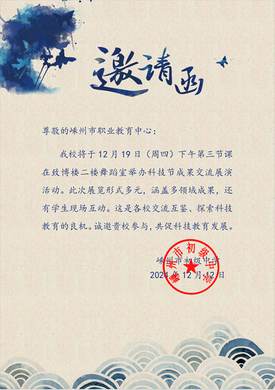 12月19日,应嵊州市初级中学邀约,学校科创团队进初级中学进行展示交流活动。