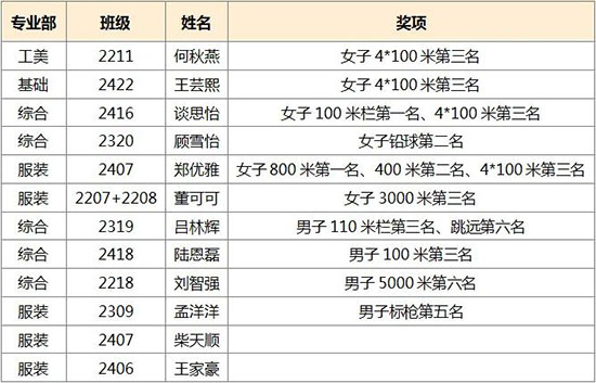 团体总分一等奖;高中组自编双人花球一、二等奖;高中组自编花球赛项一等奖;高中组自编街舞赛项一等奖;高中组女子单人操第一名。