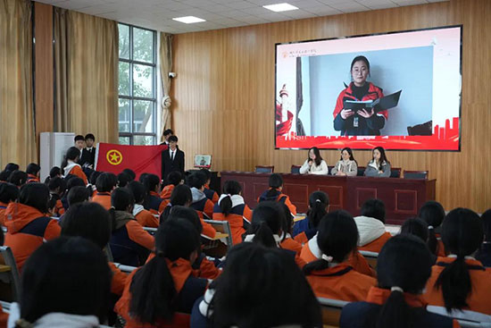 本期团员代表费若芸同学因参加学业水平考试,无法亲临现场。但她通过精心录制的视频,向结业典礼传达了自己的激动与喜悦之情。在视频发言中,费若芸同学倡议全体同学,要用实际行动践行入团誓言,积极参与团组织活动,为团组织增光添彩,以青春之我,为祖国的繁荣富强贡献力量。她的发言虽简短,却饱含着对共青团的热忱与对未来的坚定信念,深深鼓舞着每一位现场的新团员。