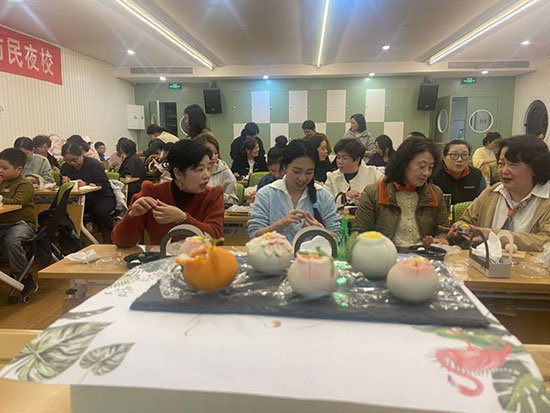 进入实践环节,学员们在老师的耐心指导下,借助各类工具,运用揉、捏、压、推、剪、叠等细腻手法,以花果植物为创作蓝本,精心雕琢、用心描绘。不多时,一颗颗饱含情感、栩栩如生的茶果子便在学员们的指尖诞生,活脱脱像一朵朵盛开的精致小花。看着自己亲手制作的成果,学员们脸上满是幸福与满足,现场也沉浸在浓厚的非遗文化氛围里。