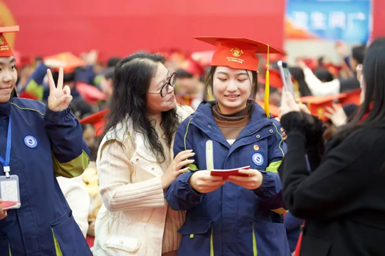 哀哀父母,生我劬劳;哀哀父母,生我劳瘁。父母和孩子互换书信环节,家长们将一封封满载深情厚意的家书递至孩子手中,这些家书不仅是家庭温暖与亲情的凝聚,更是长辈们殷殷嘱托与深切期望的载体;孩子们的信中有对父母养育之恩的感激,有对未来的憧憬和向往,更有对生活的坚守和热爱。一封家书,纸短情长,写不尽拳拳之意;一句祝福,泪光盈盈,道不完眷眷亲情……家长和孩子们热情相拥,温情和感人是现场的主旋律。家长代表动情寄语,献上了对所有孩子的美好祝愿。他鼓励学生们在未来的日子里,为推进中国式现代化添砖加瓦,贡献出属于自己的青春力量。