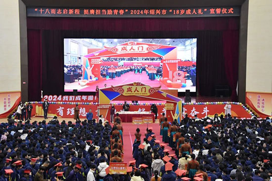 12月6日,由共青团绍兴市委、绍兴市教育局、绍兴市学生联合会主办,共青团柯桥区委、柯桥区教体局承办,柯桥区职业教育中心协办的2024年绍兴市“18岁成人礼”宣誓仪式在区职教中心体育馆隆重举行。绍兴市教育局党委委员、副局长丁初效,共青团绍兴市委副书记陈舟,柯桥区教育体育局党委副书记、副局长钱春风,共青团柯桥区委书记缪天赐,共青团绍兴市委学少工作部副部长蔡昺超,共青团柯桥区委学少部部长胡华杰,学校党委书记周国林,校长张瑜等全体校级领导以及各学院院长、副院长等出席本次活动。