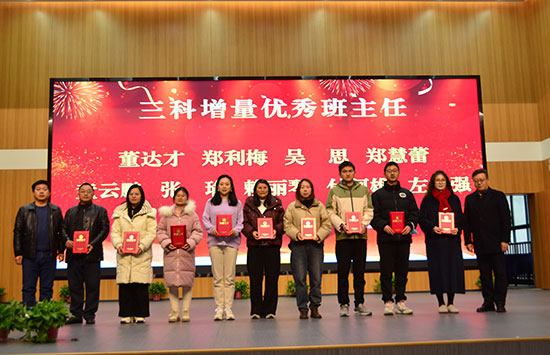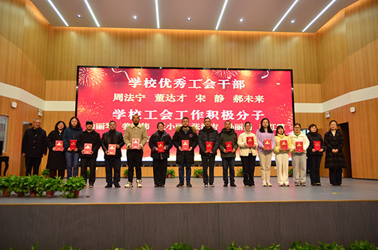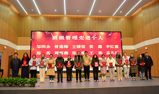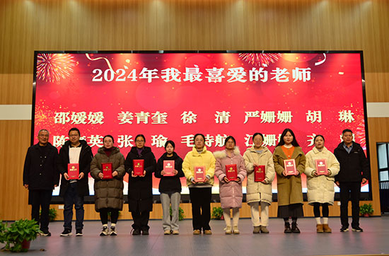 会议伊始,学校对过去一年中表现突出的教师进行了表彰。其中,“年度之星”“我最喜爱的老师”“班级管理先进个人”等荣誉称号的获得者依次上台领奖。