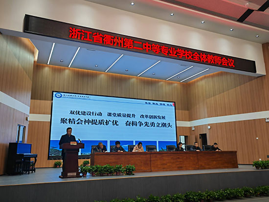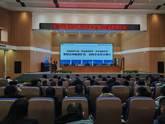 2月12日上午,衢州第二中等专业学校多功能厅内气氛庄重而热烈,全体教职员工齐聚一堂,共同参加新学期开学工作会议,为新学期的工作拉开帷幕。
