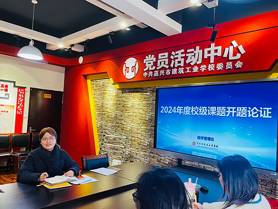 为进一步发挥教科研工作的引领作用,增强课题研究的针对性和实效性,提升教师教育科研能力,期末阶段嘉兴市建筑工业学校举行新一批校级课题开题论证活动。校内学术委员会成员李娟、沈娟、蒋山花等进行课题现场指导,教学管理处副主任朱佳颖主持此次活动,4位校级课题负责人全程参与。