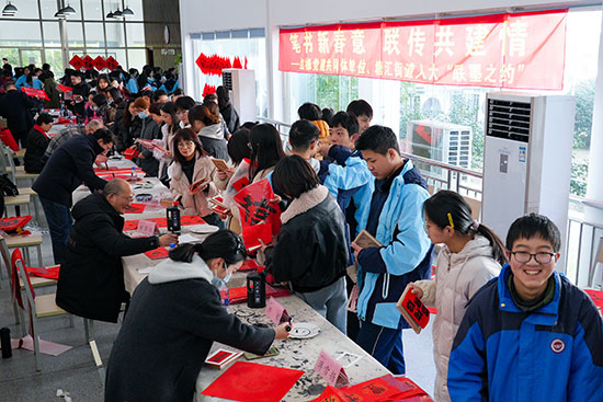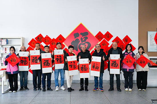 校党委书记范晓春与砚边岁月书法社骨干成员徐新奇、郑强胜、蒋雪扬、许韬等共同参与,特邀学校党建共同体单位嘉兴大学建工学院党委书记童勇军以及国家级工艺美术大师童人杰,省书协会员柴林根、江军和塘汇街道人大工委主任张珏一行来校,共同参与写福送春联活动,现场洋溢着一派其乐融融、福气满满的祥和氛围。