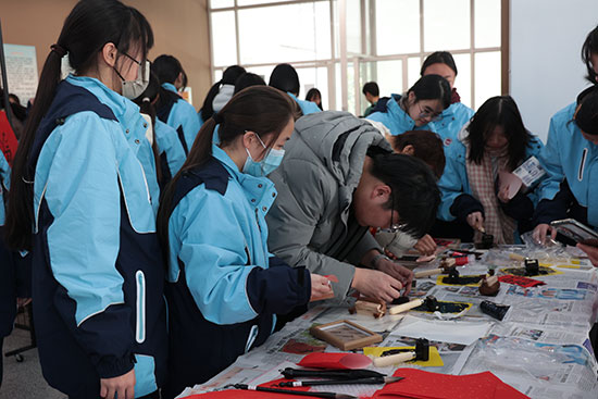 在现场工作人员的指导下,师生们还亲身体验了拓印技艺,感受非遗传统文化的魅力。新年拓福,以拓为灵,大家选择自己喜欢的模具,轻轻按压,墨色缓缓渗透纸张,一笔一画都承载着对未来的美好憧憬。