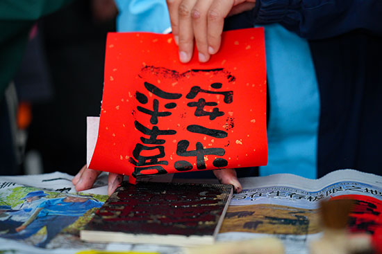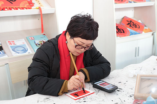 活动现场书香四溢,“年味”十足,一条条长队有序排开。送“福”字的书法大家以及书法社团老师们以墨笔作媒,以墨字传情,提笔凝神,在红纸上挥斥方遒,笔走龙蛇,一横一竖、一撇一捺,从传统的楷书到飘逸的行书,一句句工整的妙联、一个个饱含祝福的“福”字,不仅展现了书法艺术的魅力,更寄托着大家对新的一年幸福生活的殷切期盼。