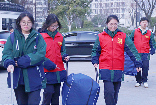 报到当天,教职工、安保人员以及学生志愿者各司其职、相互配合,引导学生有序入校。家长亦在工作人员的指挥下,将车辆依次停靠在指定的临时停车区域,有效避免了校园周边的车辆拥堵和人员聚集。