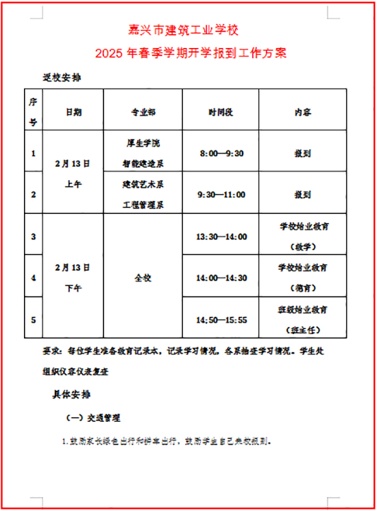 福蛇启岁,万象更新。阔别近1个月后,全体建校学子重聚校园,开启新学期。嘉兴市建筑工业学校提前谋划、精心部署,全力以赴护航开学季,确保学生安全、顺利返校。
