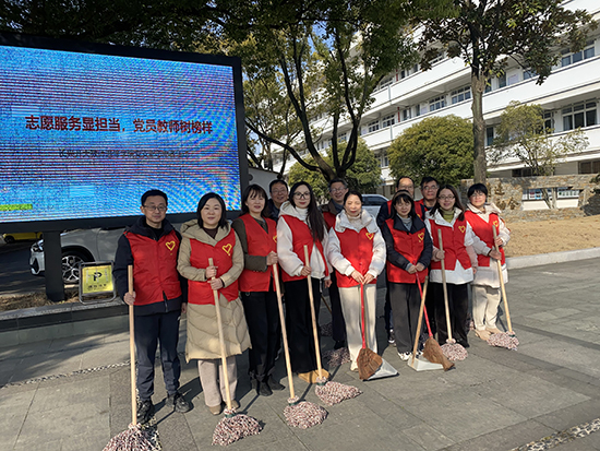 为进一步发挥党员先锋模范作用,营造干净整洁的校园环境,以实际行动迎接新学期的到来,长兴开大教师进修学院党支部于2月19日组织开展了“党员先行,净美校园”党员教师志愿活动。