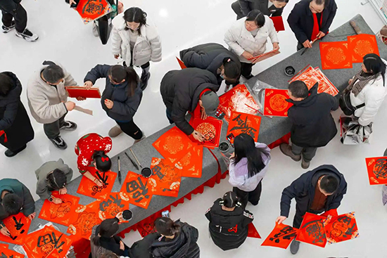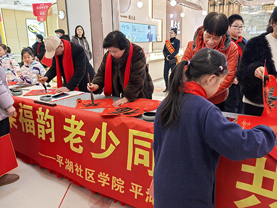 在本次活动中,平湖社区学院的老年学员与青少年宫的学生们共同书写“福”字,开展“新春送福”活动,展现了老少同乐、文化传承的美好画面。现场墨香四溢,平湖社区学院的师生们尽情挥毫,书写出一个个饱满大气的“福”字,将新年的祝福传递给在场的每一个人。