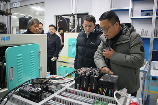 在工程实践中心,考察团实地走访模具智能制造中心,认真聆听了学生志愿者的详细介绍,感受学校智能制造专业群与生产实践的深度融合。随后,考察团参观了世界技能大赛可再生能源项目中国集训基地,观摩了智能装备学习工作站和智能控制学习工作站。考察团成员对学校“以赛促学、以产促教”的做法及成果表示高度认可。