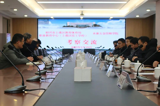 2月19日上午,为扎实推进上虞区职教园和现代职业教育体系建设,在绍兴市上虞区教体局党委委员、副局长陈炯军带队下,绍兴市上虞区教体局、教体集团、职业教育中心(上虞区技工学校)一行12人专程来永康五金技师学院考察交流。学校常务副院长王钟宝,党委委员马林刚、田雪萌等领导参加此次交流活动。