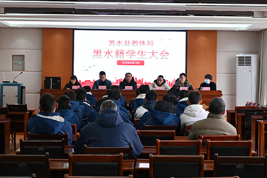 2月19日黑水籍学生大会上,黑水教体局领导对全体黑水籍在校学生开展感恩教育、养成教育。