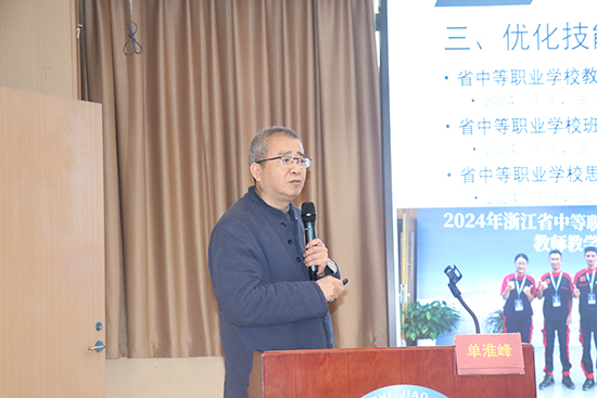 温州市教育教学研究院职教教研室主任单淮峰老师以《标准视域下职教教研的框架建设》为题,分析了2024学年第一学期中职学测成绩,并详细阐述了2025年职教教研工作的思路和重点。单主任强调,要以标准为导向,构建科学合理的教研框架,推动职业教育高质量发展。