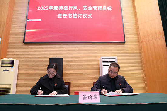 教育是根本,安全是前提,师德是关键。学校特意安排了师德、行风责任书签订仪式。全体教师认真阅读并签订了年度《师德师风建设目标管理责任书》《安全管理工作目标责任书》。校长蔡建代表学校分别与处室、学区、教师代表签订了这两份责任书。