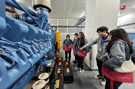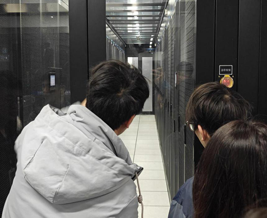 在供电机房和变压机房中,中心工程师生动地讲解了云计算中心供配电的“双保险”系统,并结合高低压配电柜、不间断电源(UPS)、柴油发动机等设备原理,向同学们阐述了当市电故障时,上千台服务器如何通过精确的电压调控和分配对云计算中心“无缝续命”。同学们在现场疯狂燃烧“CPU”,计算出了一桶柴油的转化率,极大地激发了同学们的学习兴趣。