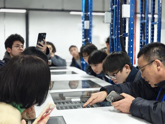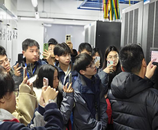在液冷机柜前,同学们见识到了全球先进的浸没式液冷技术,相较于传统风冷方式,散热效率实现了质的飞跃,面对一排排浸泡在特殊液体中的服务器,超强的视觉震撼让学子们直呼“仿佛走进科幻大片”,对科技进步的力量有了更深刻的认识。