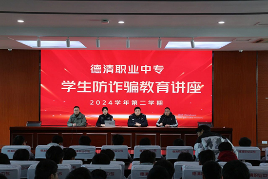 春光不负少年志,青春逐梦正当时。新学期伊始,为进一步增强师生的安全防范意识,筑牢校园安全防线,德清职业中专举办了学生防诈骗教育讲座和学生安全教育主题班会活动。此次活动以“专业引领”与“深入班级”相结合的方式,将安全教育理念深植于每一位师生心中,为建设平安校园筑起一道坚固的防线。