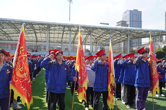 校领导及各专业部部长为高三学子们擂鼓助威,战旗手们挥舞战旗,带领全体学生喊出响亮的口号。鼓声震天,战旗飘扬,展现了学子们迎接高考挑战的坚定决心与昂扬斗志。青春的激情与梦想的力量交织,为百日冲刺奏响了最激昂的序曲。