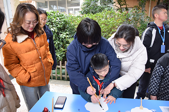 3月4日,在校长张瑜的带领下,校团委组织“阳光使者”志愿服务团队的优秀青年志愿者前往柯桥区育才学校开展送温暖活动。活动伊始,23商务1班徐锦涛同学声情并茂地向大家讲述了自己参与志愿服务活动的亲身经历与感受。随后,同学们分成三组开展志愿服务活动:在西点制作区,志愿者们手把手向育才学校的同学们传授技巧,空气中弥漫着奶油与面粉交融的香甜气息,共同制作出一块块精致的曲奇小饼干;在漆扇制作区,同学们领略了中国传统艺术的魅力,柯职学子与育才的孩子们共同尝试制作属于自己的精美漆扇;在绘制区,同学们创意飞扬,画笔在纸上灵动跳跃,共同绘制出一幅幅绚丽多彩的作品,每一笔都饱含着大家对快乐与美的追求。紧接着,备受瞩目的“团团直播间”开启了首场模拟直播活动,通过直播镜头,大家可以清晰地看到志愿者们与孩子们互动的每一个温馨瞬间,也可以感受到浓浓的活动氛围。活动过程中,两校学子还一起参与了卫生清扫工作,他们拿起钳子、垃圾桶等清洁工具,仔细地清扫着每一个角落。在他们的共同努力下,周边环境变得更加整洁美观。