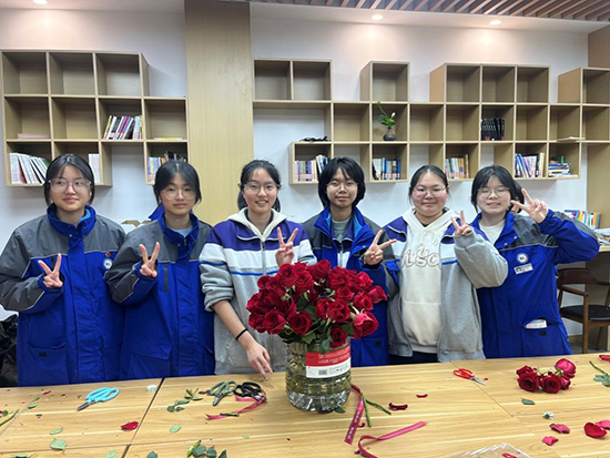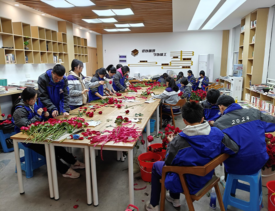 在临平职高校园,全体女老师温暖如春日的阳光,是她们的温柔明媚驱散了学生心头的阴霾,是她们的智慧坚强鼓励着学生勇敢追寻属于自己的光。校园处处充满了爱与关怀,这份沉甸甸、无私奉献的爱,深深打动着每一位临职学子的心。来自计算机部数媒专业2419班的同学们,在赵樱俊老师的带领下,利用课余时间为老师们包装玫瑰花等礼物,他们用行动诠释对老师的热爱与感恩,也是2419班送给全体临职女教师的特殊礼物。