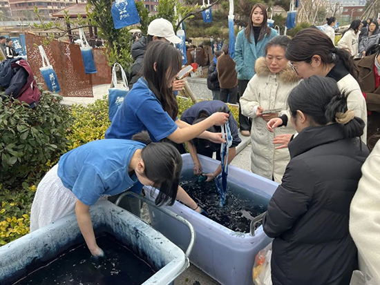此外,活动特别设置了非遗技艺体验环节,老师们亲手体验扎染技法,感受传统文化的魅力。与此同时,互动游戏环节如找鸭子、投壶等活动也让参与者们乐在其中,欢声笑语不断。