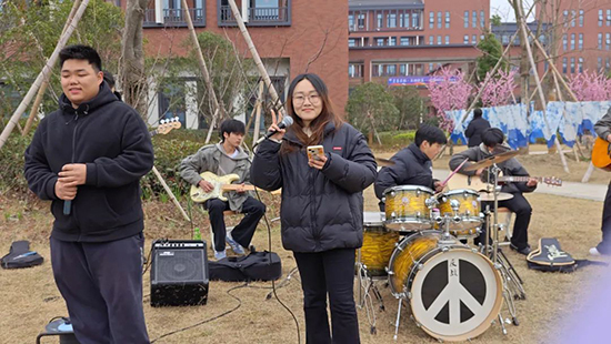绿湖边、草坪上,童钧意老师的古筝弹奏与校乐队社的流行弹唱交织成动人的旋律,悠扬的乐声在春风中飘荡,为节日增添了一抹诗意。参与者们沉浸在音乐与美景中,心灵得到了极大的放松与愉悦。
