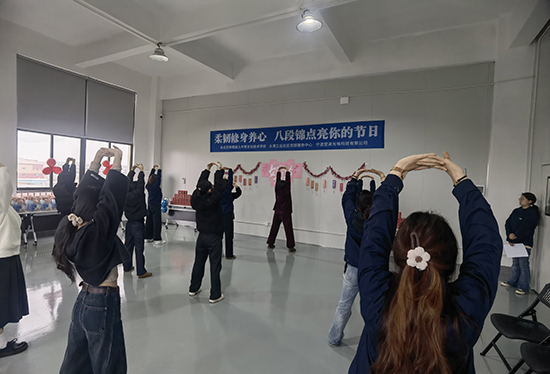 在三八国际妇女节来临之际,新碶成校联合大港工业社区,为宁波翌波光电科技有限公司的女职工们带来了一场别开生面的八段锦培训活动,以独特方式关爱女性员工身心健康,丰富其精神文化生活。