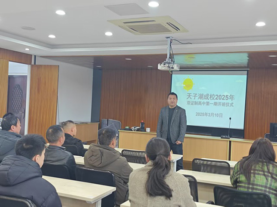3月10日,安吉社区教育学院天子湖分院(天子湖成校)2025年第一期成人高中班开班仪式在学校二楼培训室隆重举行。学校郭士斌校长、班主任柳老师以及部分新生参加了此次开班仪式。