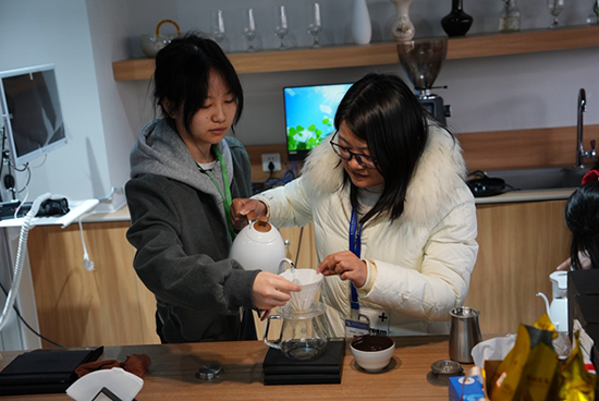 图书馆三楼的咖啡吧内,研磨咖啡豆的细碎声与轻柔的音乐相映成趣。女教职工们或在咖啡师的指导下尝试手冲技法,感受水温与水流对风味的影响;或倚窗而坐,品味特调的“春日限定”拿铁,搭配一份小甜点,享受难得的午后闲适。