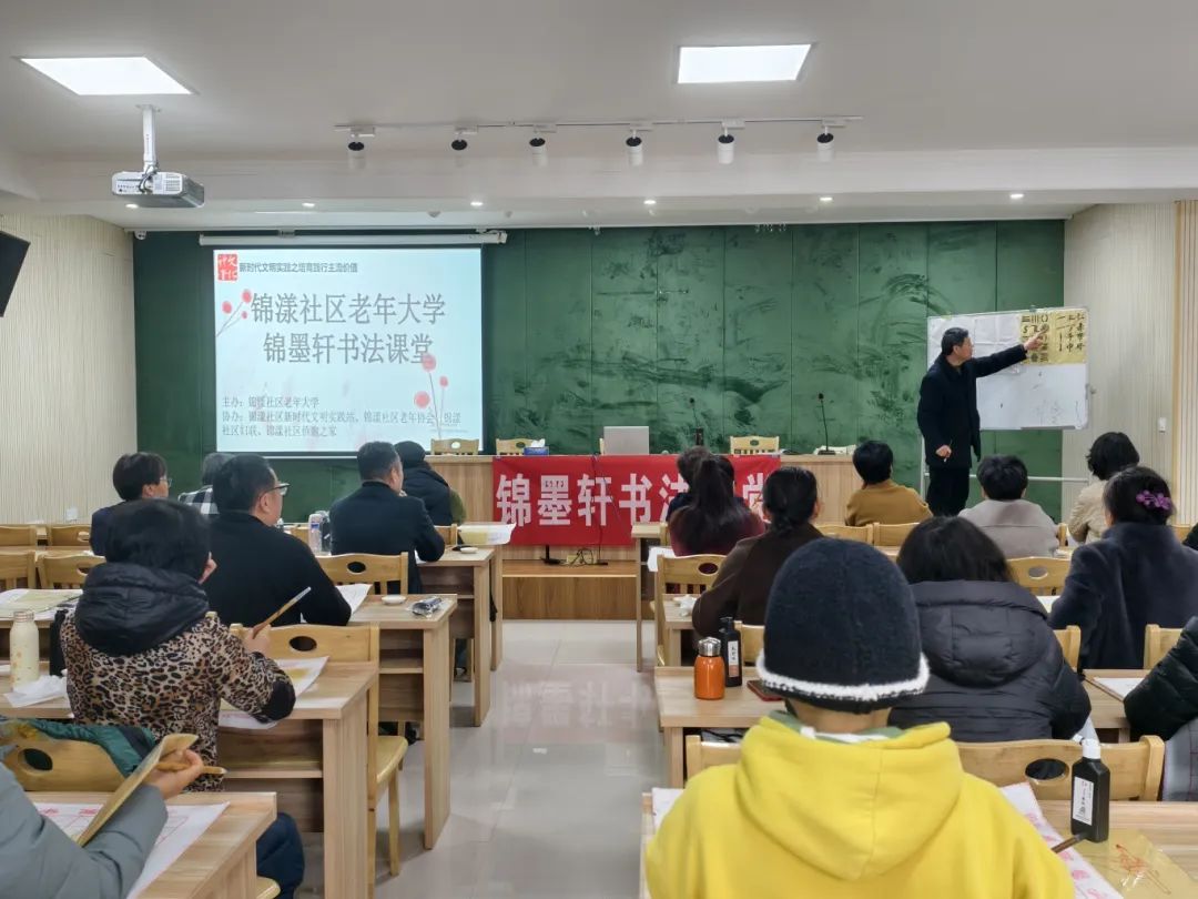 阳春三月,万象更新。今天上午,慈溪市宗汉社区教育中心在锦漾社区老年大学举办的锦墨轩书法课堂在一片期待中如期开课,活动现场气氛热烈,吸引了众多社区老年人踊跃参与。