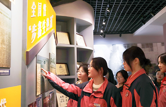 师生认真聆听讲解,不时驻足观看。互动交流环节中,学生积极提问,与讲解员、老师深入探讨步鑫生改革精神与当代青年责任担当的联系。