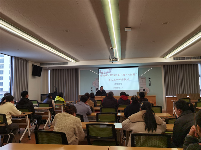 3月13日中午,安吉县社区教育学院递铺分院热闹非凡,一场意义非凡的成人双证制免费高中学员开班仪式在这里隆重举行。此次活动吸引了来自双证制班的50多位学员齐聚一堂,共同开启他们的学业新征程。