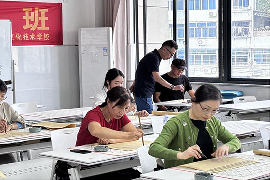 书法教室里,氛围静谧。一张张宣纸铺展在古色古香的桌面上,学员们端坐在桌前,手中紧握毛笔,神情专注而投入。他们的眼神中透露出对书法艺术的热爱,每一次提笔、落笔都仿佛在与古人对话,与千年文化进行心灵的交流。