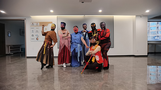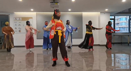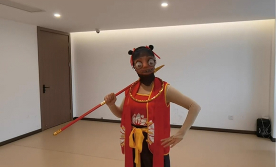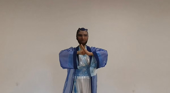紧接着,阿姨们充分发挥自己的舞蹈才艺,来了一段情景舞蹈表演。在天雷滚滚的配乐声中,阿姨们时而簇拥着哪吒齐舞,时而由敖丙、太乙真人和哪吒来个互动,时而配合哪吒独舞,“哪吒”丁阿姨居中舞动火尖枪,旋转、踢腿,动作刚劲有力,将哪吒面对强敌时的无畏与果敢展现得淋漓尽致。整个COSPLAY秀演阿姨们活力四射,将电影中的动作元素和现代流行舞蹈风格融合在一起,跳出独特魅力。