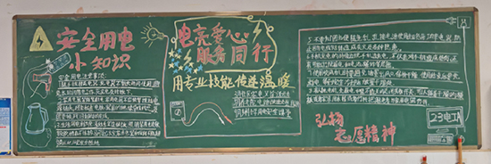 本次活动以“专业+”为核心,鼓励学生将学科知识融入志愿服务场景设计。例如,21电商1、21电商2班以“乡村振兴 直播助农”为主题,将直播间搬上黑板,使黑板报成为连接校园与田野的数字农创孵化器,在粉笔与网络的碰撞中重构青年助农新范式。23电工A班立志用专业技能传递温暖,以“电亮爱心 服务同行”为主题,不仅宣传了安全用电小知识,还做出了志愿服务的规划,将专业技能转化为社会服务能量,形成“科普—实践—传承”的志愿服务生态闭环。机械、汽修、康养、酒店管理等专业也纷纷结合专业特色,展示了他们正在进行的或即将进行的志愿服务模式,生动诠释了青年志愿者的责任和担当。