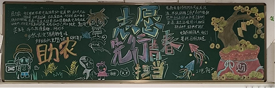 各班级充分发挥艺术创造力,采用粉笔渐变、丙烯着色、黏土浮雕等技法丰富视觉效果。部分班级增设“志愿故事角”,讲述学生参与助农直播、敬老爱老服务、社区维修等真实经历;另有班级设置“服务预约墙”,通过便签留言收集师生需求,将黑板报转化为志愿服务的实践平台。