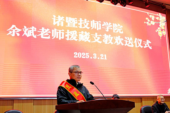 为贯彻落实人社部《关于做好2025年技工教育人才援藏选派工作的通知》精神,诸暨技师学院积极响应发出号召,骨干教师余斌老师主动报名申请参加援藏工作,经过层层选拔后成功入选全国2025年技工教育人才援藏名单,于3月启程赴西藏拉萨开展为期一年半的支教工作,为雪域高原的职业教育发展注入“诸暨力量”!