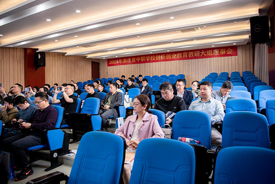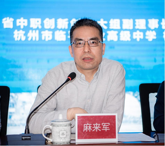 3月26日,由浙江省教育厅职成教教研室主办、杭州市临平职业高级中学承办的浙江省中职创新创业教育教研大组理事会在临平职高鼎湖校区隆重举行。省创新创业教研大组教研员麻来军,临平区教育局党委委员张禹,理事长单位、宁波市鄞州职业教育中心学校书记王建华,副理事长单位、杭州市临平职业高级中学校长丁卫东,副理事长单位、温州市财税会计学校校长戴剑锋,副理事长单位、宁海职教中心校长袁哲海等51位来自全省11个地市的创新创业教研员和理事单位代表齐聚一堂,共商新时代中职双创教育发展大计。