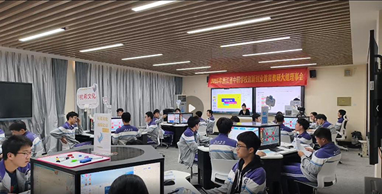 会议期间,与会者实地考察临平职高机电、数控、汽修等专业“教学工厂”式实践中心,重点观摩人工智能创新实验室的校企共建成果。