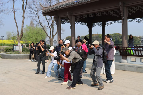阳春三月、鲜花烂漫,3月26日,浙江老年开放大学柯桥学院摄影与形体走秀两个班的学员们齐聚鉴湖游步道开展户外教学活动,共绘光影与优雅的美好邂逅。