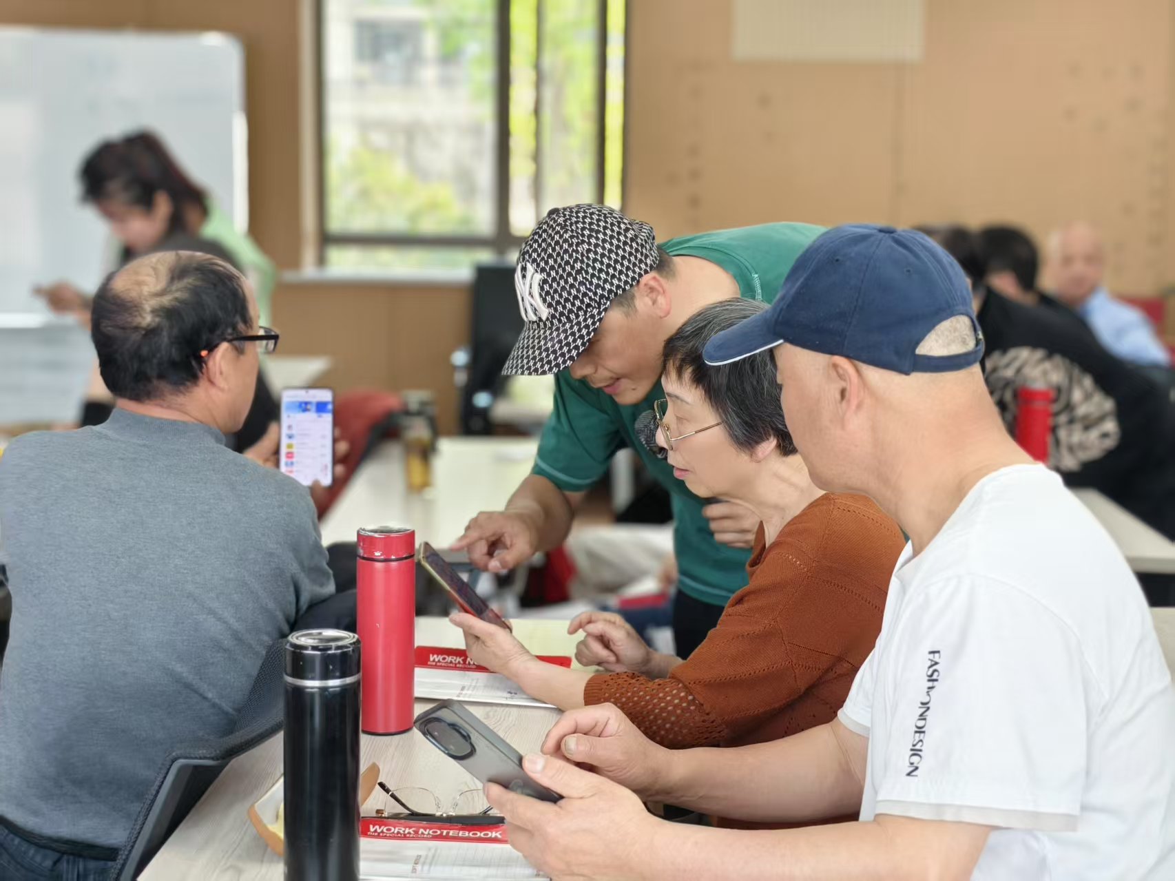 在培训过程中,丁老师采用通俗易懂的语言和现场演示的方式,耐心地为每一位老人讲解操作步骤,并手把手地指导他们进行实践操作。对于老年人提出的问题,丁老师都一一给予详细解答。老人们热情高涨,认真学习,积极互动,现场气氛十分活跃。